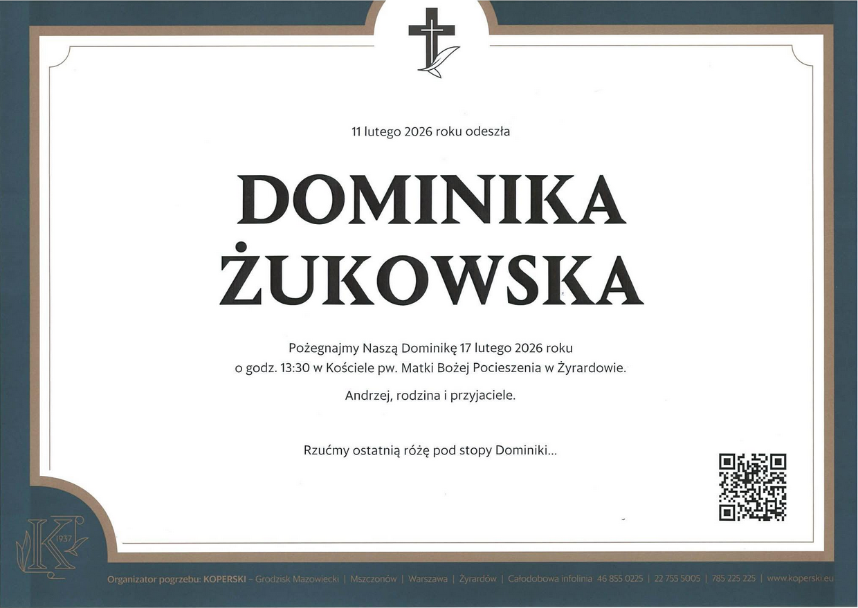 Redakcja składa wyrazy głębokiego współczucia rodzinie, bliskim oraz przyjaciołom Dominiki Żukowskiej. W obliczu tej nagłej i bolesnej straty szczególnie ważne jest uszanowanie prywatności osób pogrążonych w żałobie oraz pozostawienie im przestrzeni i spokoju w tym trudnym czasie.
