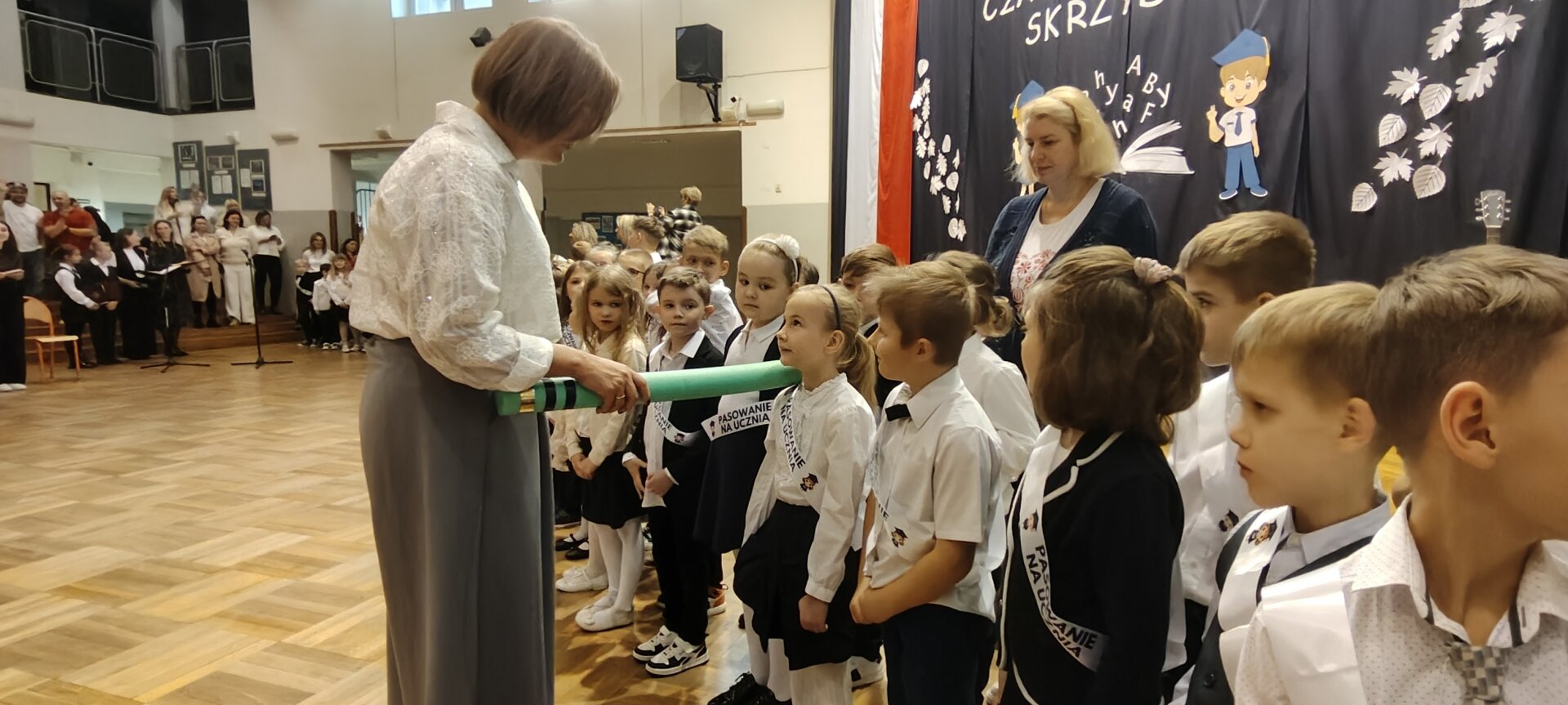 To był wyjątkowy dzień (21 października) dla najmłodszych uczniów Szkoły Podstawowej nr 9 w Skierniewicach. W uroczystości pasowania na ucznia wzięło udział 100 pierwszoklasistów z pięciu klas. Aula wypełniła się uczniami, nauczycielami i rodzicami, którzy z dumą obserwowali swoje pociechy w najważniejszym dla nich momencie szkolnego startu.